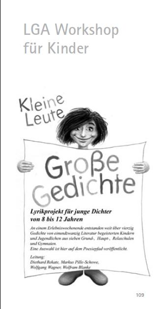 Eine umfangreiche Auswahl der bis Ende 2008 ausgehängten Texte sowie der Geschichte des Poesie-Pfades und des Mühlbachtales ist im Dezember 2009 als Buch erschienen. Es wird ergänzt durch Bilder aus dem Mühlbachtal, Bilder von Dichtern und Denkern, Inhalts- und Quellenverzeichnisse sowie zwei Vorworte. Ebenso sind die Texte enthalten, die in den beiden Workshops von Kindern und Erwachsenen gefertigt wurden. Durch die am Ende des Buches eingefügten Karten ist der Poesiepfad auch für Ortsfremde leicht zu finden. Der Chefredakteur der Westfalenpost-Redaktion Arnsberg, Theo Hirnstein hat zu dem Buch einen wunderbaren Ausspruch geprägt: "Soviel Buch für sowenig Geld..." Format: 11 x 20,5 cm 136 Seiten, hochwertiger Festeinband, Fadenheftung, Kaptalband ISBN: 978-3-930264-79-7 erschienen bei F.W.Becker-Druck, Arnsberg Preis: 16,- € (Wegen der Gemeinützigkeit der LGA nur knapp über den Selbstkosten) Das Buch ist vergriffen |